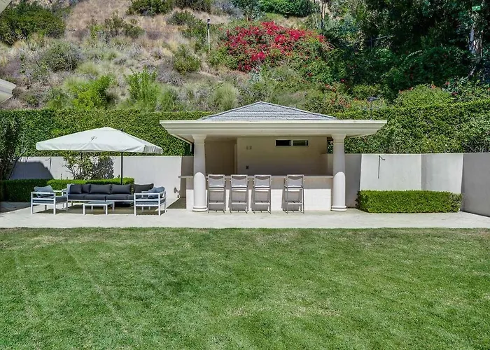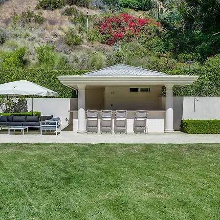 Along with access to such natural sites as the public Will Rogers Memorial Park, around 4 km away, the 9-bedroom Le Jardin Villa Los Angeles offers a private swimming pool. Offering a Jacuzzi, the accommodation is about a 10-minute drive from the Frederick R. Weisman Art Foundation|the Frederick R Weisman Art Foundation.